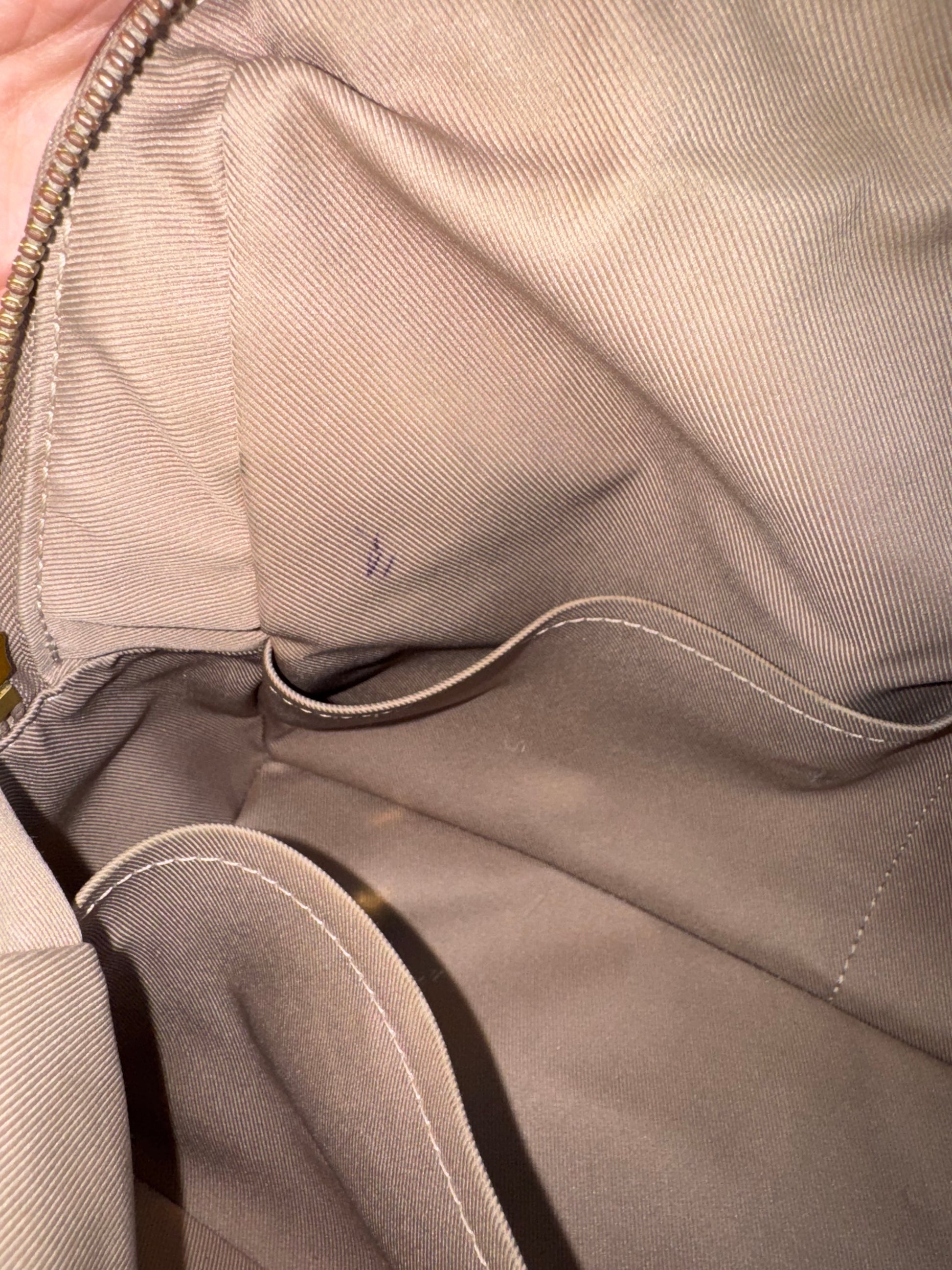 Details: Slight wear to corners and outer leather but no too noticeable. Some of the metal golden coating on the crossbody strap has peeled off.